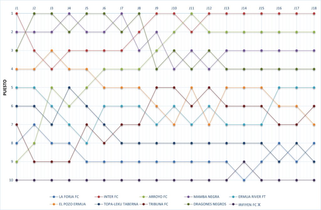 | 7 | EL POZO ERMUA | 18 | 5 | 2 | 11 | 17 | 27 | 44 | -17 |
